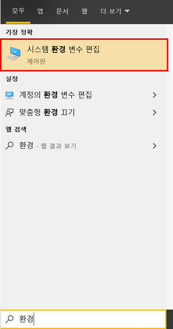 2. '시스템 환경변수 편집' 검색