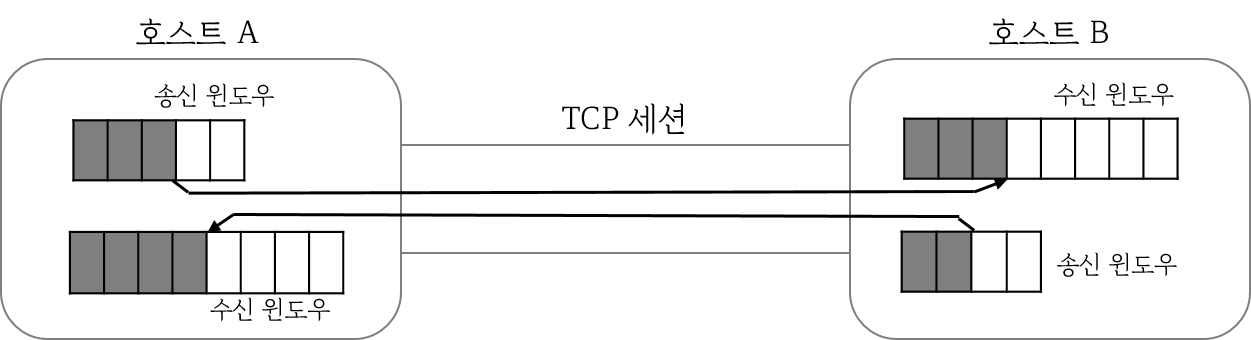 TCP는 네트워크 상태에 따라 데이터 전송량을 제어하는 알고리즘이 있다. 흐름 제어의 기반에 있는 것이 송수신 단에서 각각 버퍼의 역할을 하는 윈도우이다. 송신단에 있는 것이 송신 윈도우, 수신 단에 있는 것이 수신 윈도우로 각 호스트의 TCP 세션마다 송신 윈도우와 수신 윈도우를 가지고 있다.