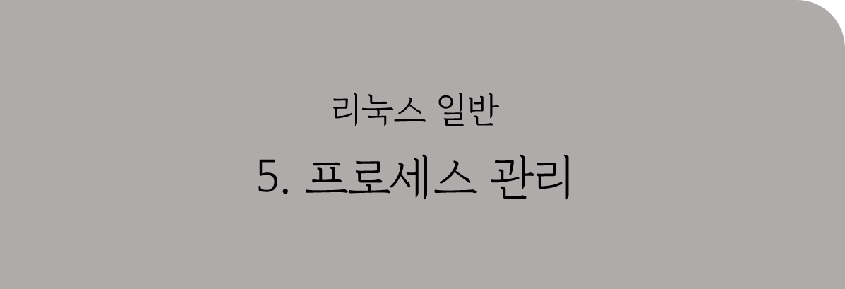 프로세스는 CPU와 메모리를 할당받아 실행시키는 프로그램이다. 프로세스들마다 고유의 프로세스 ID(PID)를 할당받는다. 가장 먼저 실행되는 프로세스는 init이다. init의 PID는 1이다. 프로세스 init에 의해 다른 모든 프로세스들이 시작된다.