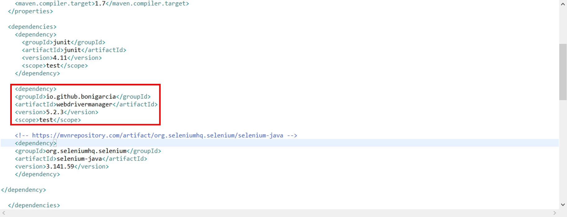 pom.xml에 dependency를 추가해주면 따로 웹 드라이버 설정을 해주지 않아도 됩니다.