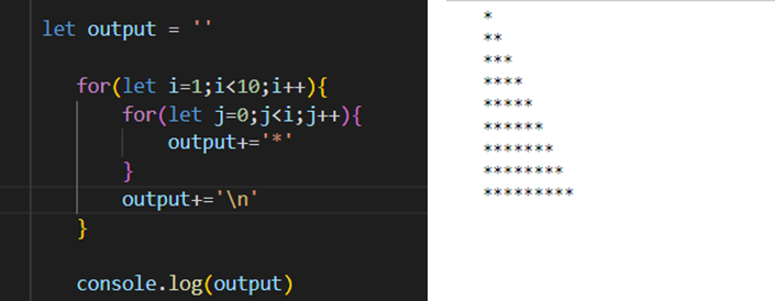 그리고 중첩 반복문을 이용할수도 있는데 흔히 아는 트리 만들기가 중첩 반복문을 이용해서 만들어지는 예제이다.