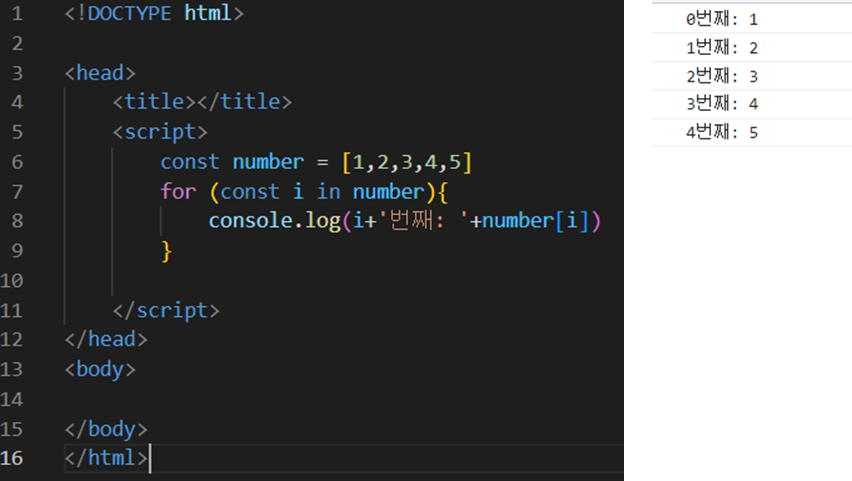 for in 반복문은 반복 변수에 인덱스가 들어간다면 한번에 처리할 수 있게 하는 게 for of 반복문이다.