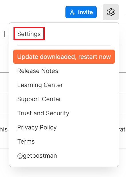 1. 애플리케이션 상단 설정 톱니바퀴를 클릭하고 메뉴에서 설정을 선택한다.