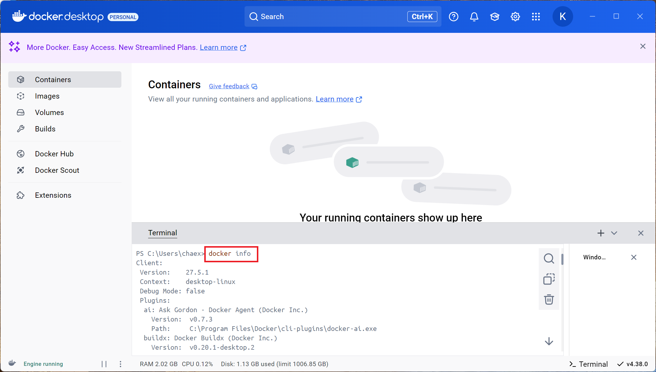 docker info 명령어를 실행해보고 다음과 같은 출력 메시지가 나타난다면 준비된 상태이다.