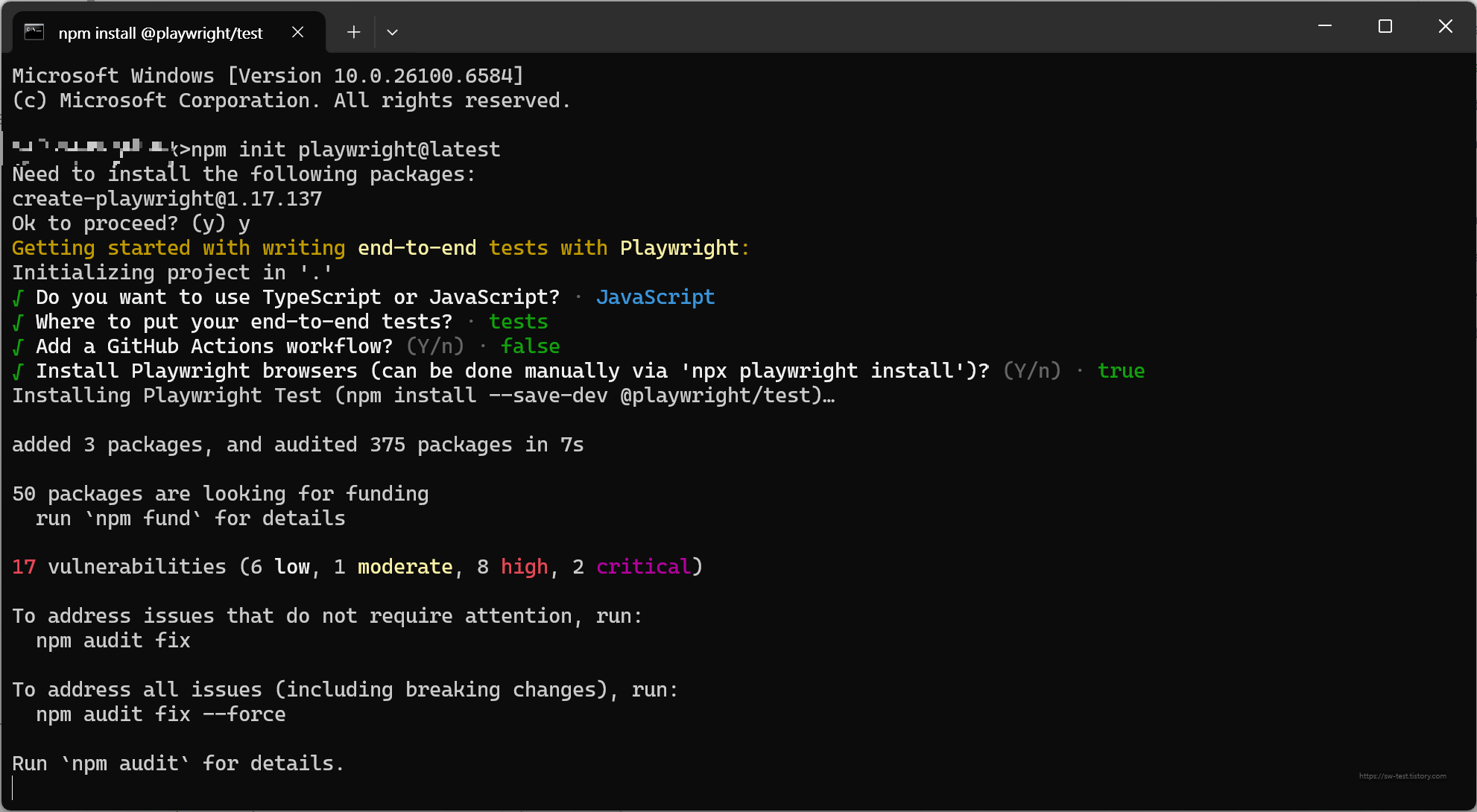 - Install Playwright browsers (default: yes) > playwright 브라우저 설치까지 포함할것인지 묻는 질문입니다.